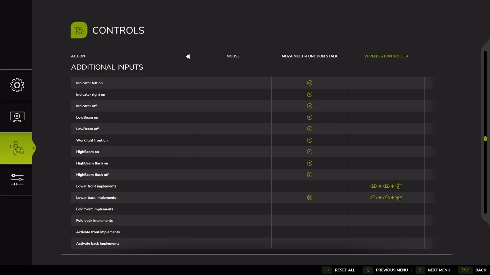 Zusätzliche Eingaben verbessert die Fahrzeugsteuerung in FS25 durch explizite Tastaturbelegungen, die für realistische Hardware-Setups wie die Moza-Multifunktionshebel entwickelt wurden.