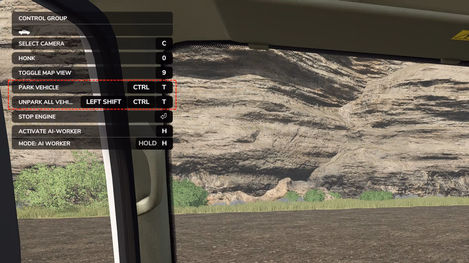 Mit Strg + T kannst du das Tabben für das aktuelle Fahrzeug (de)aktivieren um Fahrzeuge zu “parken”.