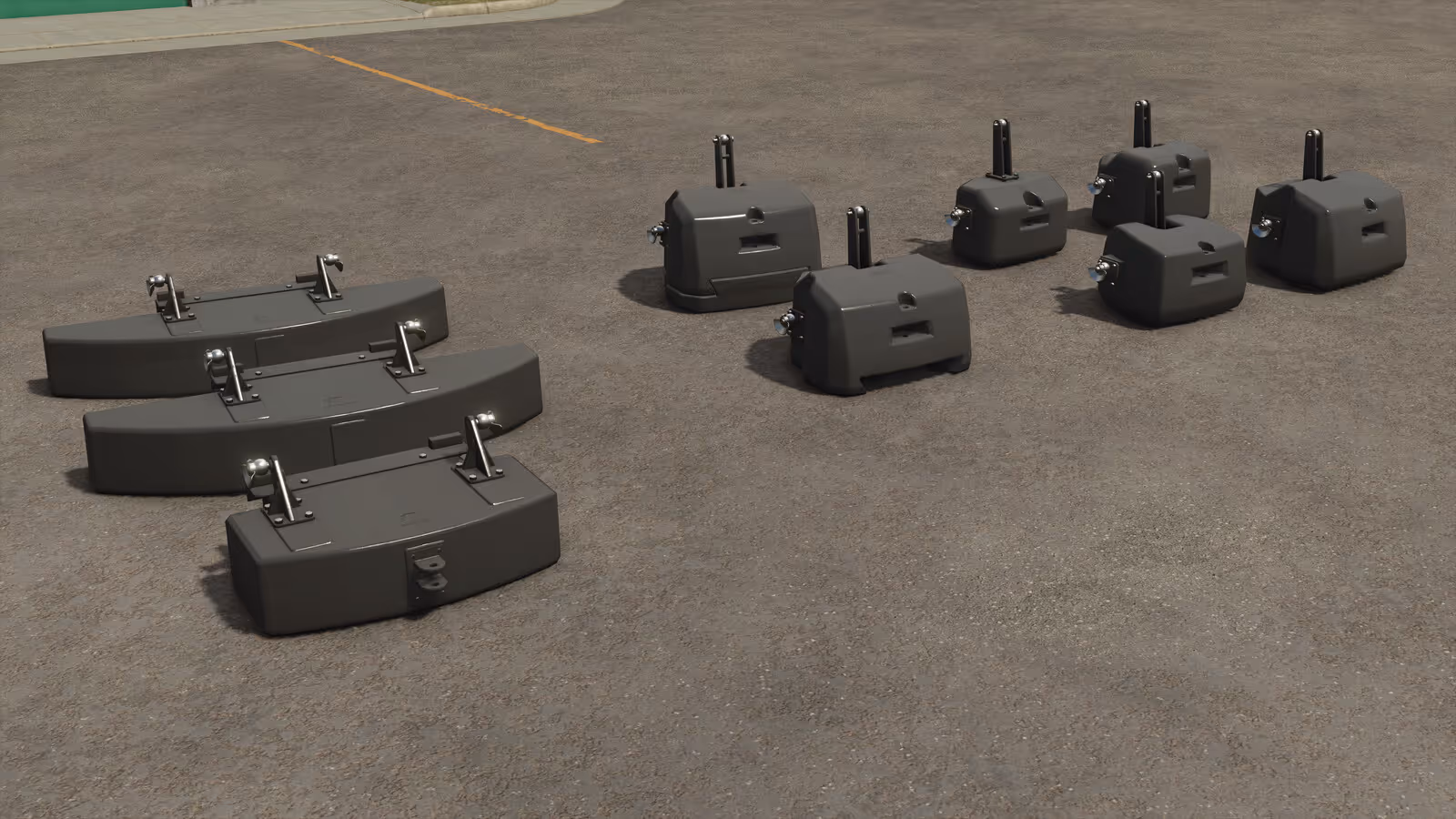 Umfangreiches Paket mit Front- und Heckgewichten von Tenwinkel für den Farming Simulator 25.